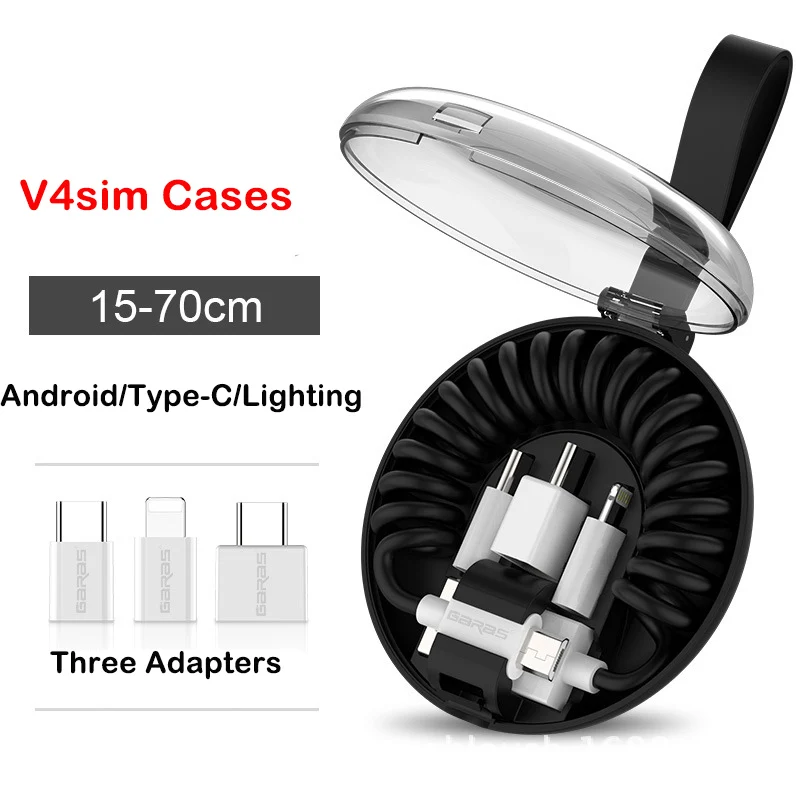 All-in-one portable spring data cable with Type-c Android Lighting Adapter Storage Box